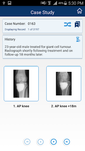 This educational application comprises over 3000 anonymized case studies in musculoskeletal imaging. The cases vary from the common-o-garden to the esoteric. New cases are constantly added to the database. Cases may be viewed by selecting pathology and/or anatomical region or as a quiz utilizing the random icon. Dr. A Mark Davies, Dr. Steve James, Dr. Rajesh Botchu, Consultant Musculoskeletal Radiologists at The Royal Orthopedic Hospital, Birmingham developed this app with help and support from Reubro international. Acknowledgements to Prof PB Pynsent and Simon Disney.