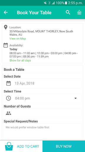 Khách hàng có thể đặt một vị trí theo sự thuận tiện của chúng từ ứng dụng.