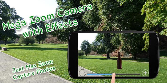 Mega Zoom Camera with Effects application with handy zoom scroller simple and easy to use, and you can edit your long distance created photo with cool annd stlylish effects.So, let you take photos even with zoom x100 with maximum zoom as your hardware model.You will be able to set maximum hardware zoom value while taking photos.You will be able to take quite clear, stable and well quality photos of very far objects. After reaching maximum manufacture values, you can use additional digital super zoom.Features :- Now capture long distance photo will be more easily.- Support front camera and Flash if your device have facility.- It can works on every phone with a built-in camera.- So now you can take pictures with optical zoom x100.- Access to maximum hardware optical and digital zoom.- Use it as zoom camera or as a zoom-mirror - easily take a photo of the zoomed picture - It's FREE!- Super cool and wonderful 20 effects for your photo and make it more beautiful.- Save and share your long distance photo with fully zoom with your friends on social sites.Enjoy Mega Zoom Camera with Effects, it's free for all.Mega Zoom Camera with Effects application gives you an ability to use maximum values of digital and optical zoom with cool effects.