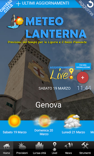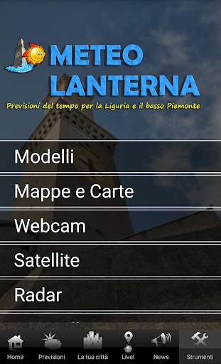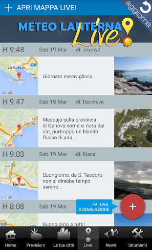 - Il social Meteolanterna Live! con tutte le informazioni sul meteo e le segnalazioni in tempo reale dove anche tu puoi partecipare direttamente dall'app o dal sito www.meteolanterna.net/live