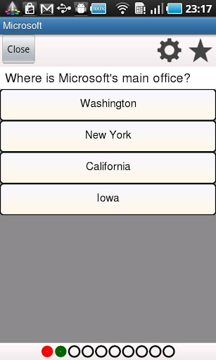 Do you like quizzes? Do you like microsoft Do you like free stuff? Then this is the app for you... fun, free multiplechoice trivia quizzes in your pocketMicrosoft Corporation NASDAQ: MSFT and NYSE: MSFT is an American public multinational corporation headquartered in Redmond, Washington, USA that develops, manufactures, licenses, and supports a wide range of products and services predominantly related to computing through its various product divisions. Established on April 4, 1975 to develop and sell BASIC interpreters for the Altair 8800, Microsoft rose to dominate the home computer operating system market with MSDOS in the mid1980s, followed by the Microsoft Windows line of operating systems.WikipediaFEATURESFour options for each questions, only one right answerChallenge yourself or share with others.Review your results how did you do?Save your favourite questionsSee your learning historySend questions to your friends on Twitter and facebook or via email to see how they compare.Access to over 1000 more quizzes through the appNo registration necessaryPlay offlineWHAT WE DOIndieQ39;s mission is to educate an evergrowing global community of learners. We provide thousands of fun and challenging mobile elearning quizzes over an everexpanding range of subjects, from trivia to languages to high school exams to professional qualifications. Our content comes from publishing houses, experts and quiz enthusiasts. Now everyone can experience learning at their fingertipsKeywordsfree, free trivia, trivia game, free game, bill gates, windows, steve ballmer, microsoft office, excel, word, project, google apple, facebook, amazon