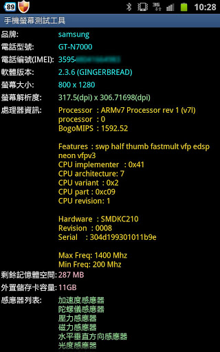In the main menu, simple information about the phone is also provided such as phone's model, CPU, Memory, Screen Dimension, Sensors etc.