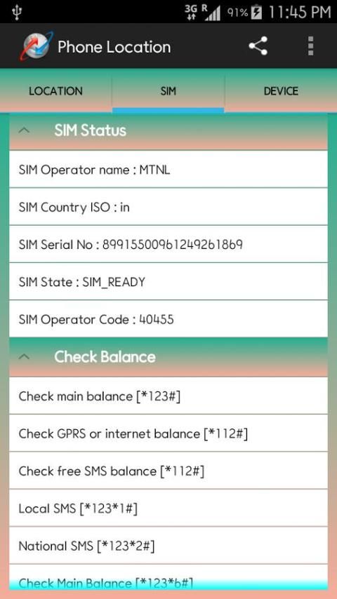 ★ thẻ SIM và mạng lưới các chi tiết như thuê bao id, điều hành SIM, SIM nối tiếp tên nhà điều hành không, SIM, điều hành mạng, loại mạng sẽ có sẵn cho bạn.