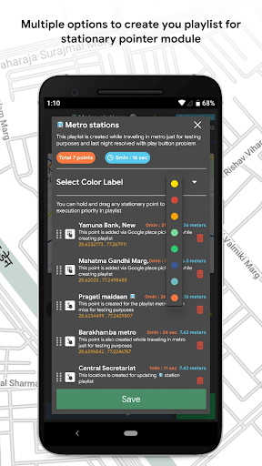 Nhập thời gian tùy chỉnh tính bằng giây cho bất kỳ điểm nào trong danh sách phát, nhấp qua nút phát và hệ thống sẽ tự động bắt đầu điểm tiếp theo sau khi thời gian kết thúc.Mock loc không ở trạng thái tiền cảnh