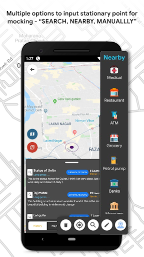 Đây là công cụ bắt buộc dành cho bất kỳ nhà phát triển Android nào cần kiểm tra các ứng dụng dựa trên địa lý hoặc chỉ kiểm tra ứng dụng của anh ấy trên các vị trí khác nhau.Thế giới chỉ với một số nhấp chuột.Ứng dụng này thiết lập các vị trí GPS giả để mọi ứng dụng khác trên điện thoại của bạn đều tin rằng bạn đang ở đó.Chỉ cần chọn điểm bạn muốn giả (hoặc tiêm) vào điện thoại và nhấn nút phát, có nhiều cách để chọn một điểm cho vị trí giả, cũng có một tính năng tự động lưu trữ lịch sử theo lịch sử của bạnđiểm.Bạn có thể thêm bất kỳ điểm nào dưới dạng yêu thích và cũng thêm ghi chú vào vị trí cụ thể đó
