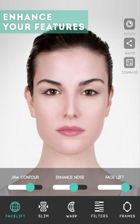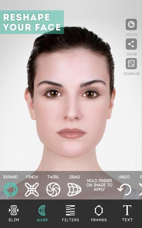 ModiFace Photo Editor features our state-of-the-art cosmetics/makeup simulation, as well as skin and facial enhancement effects. Other great features include blemish removal, teeth whitening, color contacts, facial/body slimming, and even warping. To finalize your photo, you can crop, add filter, frame, and text, and instantly share your polished result with your friends and family!