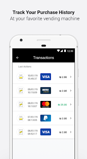 - Sử dụng thẻ ghi nợ / thẻ tín dụng của bạn, thẻ trả trước, paypal và nhiều hơn nữa - theo dõiMua lịch sử tại các máy bán hàng tự động