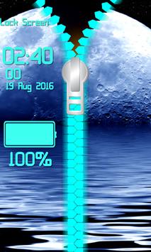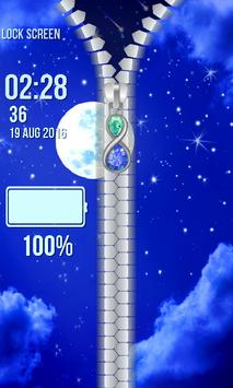 you show them this cool application. Touch your zipper screen locker and marvel at the splendid photos of the full Moon coming out from the sea. It is pitch dark and the only thing you can see above you are twinkling stars. You will feel magical. Shining moonlight will completely take your breath away. Make a wish when you see a shooting star and there is no doubt that it will come true. On the top of your foreground, under the name section, you can write whatever you want. Underneath put time and date, as well as the reminder for your battery. This will help you to check easily how much power you are left. Download the newest Moon Zipper Lock Screen app free of charge and go exploring deep space.