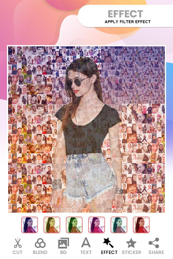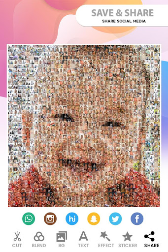 Mosaic photo effects, convert your photos into an art. You can now make a mosaic photo just in some few steps. This mosaic making app makes high quality mosaic photo collages.