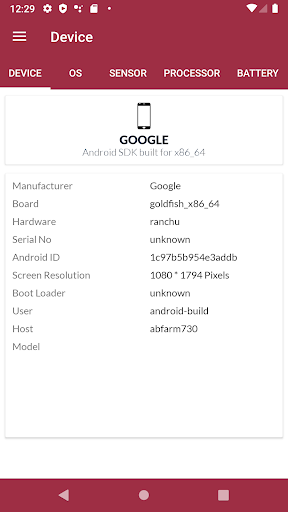 Các thông số kỹ thuật chi tiết này bao gồm tất cả thông tin về CPU, RAM, Lưu trữ, HĐH, Cảm biến, Lõi, Phân vùng, Pin, Mạng dữ liệu, WiFi, SIM, Camera, Bluetooth, Hiển thị, Tính toán các tính năng của thiết bị được hỗ trợ, Nhà sản xuất, Ứng dụng đã cài đặt, Ứng dụng hệ thống.