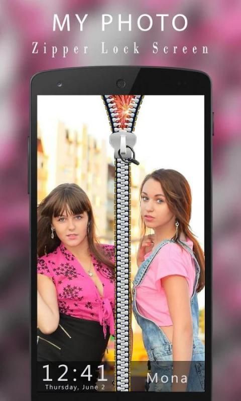 Giải nén với sự dễ thương này My Photo Zipper Lock Screen đáng yêu cho tủ khóa. Kéo xuống móc để mở khóa màn hình với hiệu ứng unzip tuyệt vời.