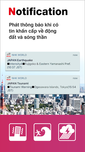 - Phát thông báo khi có tin khẩn cấp về động đất và sóng thần *Tiếng Anh và tiếng Trung Quốc