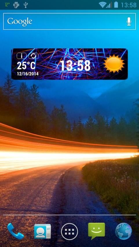 Thêm một số màu sắc neon đẹp cho màn hình chủ của bạn và làm cho nó trông mát mẻ và phát sáng trong bóng tối làm cho một bầu không khí tuyệt vời. Đây là cách tốt nhất để thông báo cho mình về thời tiết và nhiệt độ bên ngoài khi bạn không có thời gian để xem các kênh thời tiết. Bạn sẽ không bị bất ngờ bởi những cơn dông mùa hè bất ngờ và hoa sen. Vì vậy, chuẩn bị về thời gian cho một ngày lạnh với trang phục đầy đủ hoặc có kính mát của bạn cho một ngày hè nóng nực. Chỉ cần gõ vào widget thời tiết mát mẻ của bạn và bạn sẽ biết thêm về nhiệt độ, áp suất, vẩn đục, độ ẩm và tốc độ gió và thời gian chính xác của bình minh và hoàng hôn. Widget thời tiết tuyệt vời này miễn phí với chủ đề neon sẽ tiết kiệm thời gian, dây thần kinh và tiền bạc của bạn, và bạn sẽ không bao giờ nghĩ về cuộc sống mà không cần ứng dụng Widget tốt nhất này.