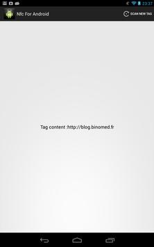 This application allow you to create simple tag and read other simples. The objectiv is to show some possibilities of Nfc For Android library