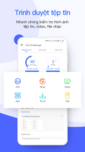 Nox File Manager là ứng dụng quản lý tệp Android, ứng dụng, ảnh, video rất dễ sử dụng! Được trang bị với những chức năng mạnh mẽ, ứng dụng giúp người dùng Android dễ dàng phân loại, quản lý & xem trước các tệp tin đa phương tiện. Bạn có thể truy cập vào thẻ SD để xem nội dung, tạo tệp tin, đổi tên, sao chép, di chuyển và xóa các tập tin.