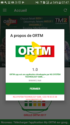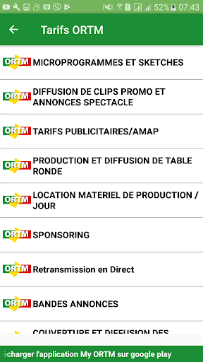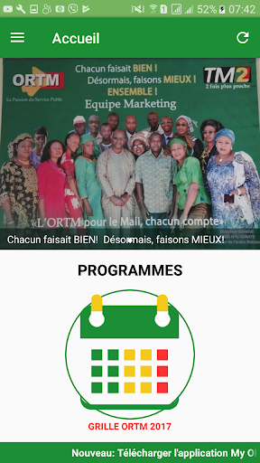 ORTM Officiel est l'application mobile jamais vue, conçue spécialement par ORTM MALI pour faciliter les relations avec les téléspectateurs. ORTM Officiel a pour objectif principal de permettre à tous les maliens, de consulter directement les tarifs des prestations ORTM depuis leurs smarphone ou tablette Android au lieu de se déplacer dans les locaux de ORTM. En plus de cette fonctionnalité, ORTM Officiel embarque d'autre fonctionnalitées clés à savoir: La grille des programmes de la télévision nationale, accès au site directe de ORTM. A travers le site de l'ORTM, ORTM Officiel vous donne la possibilité de voir les emssions ORTM ce ci en direct ou en replay. Avec ORTM Officiel rester connecter à l'actualité du pays à travers des infos qui défilent en bas de votre écran pour faire part de toutes les informations par rapport aux pays et issues de sources réelle et sur. ORTM Officiel vous tient informé en temps réel des programmes, des emissions ORTM, des innovations de la télévision nationale, et aussi même être informé des contenus des journaux à travers des résumés précis qui vous permettent de gagner énormément de temps. Ce ci est fait par ORTM Officiel avec des notifications. ORTM Officiel vous permet d'être connecté au monde tout en optimisant vos forfaits et les charges de vos batterie. ORTM Officiel est 100% Malien, pensée par ORTM, conçue par ORTM et mise en place par ORTM donc bien adaptée au contexte local. ORTM Officiel, Simple et utilisable par TOUS