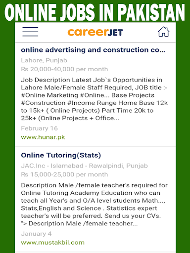 Ứng dụng này được phát triển cho tất cả các thiết bị Android. Trong ứng dụng này, mọi người có thể tìm thấy tất cả các loại công việc ở Pakistan.