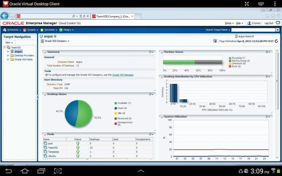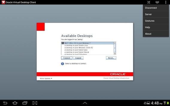 Oracle Virtual Desktop Client for Android is an ideal application for highly mobile and secure access to your virtual Windows, Oracle Linux, and Oracle Solaris desktops and applications, including Oracle's industry-leading applications.
