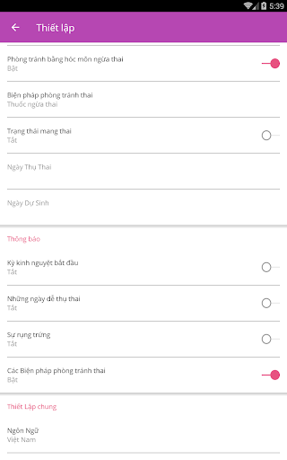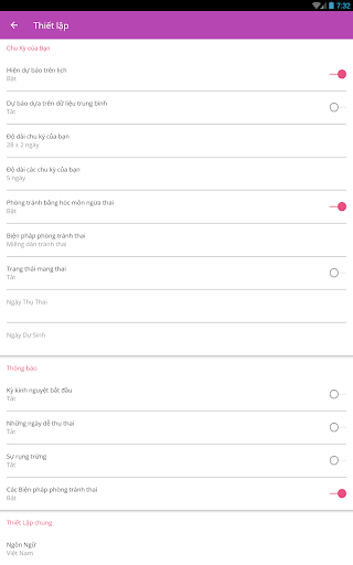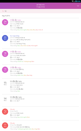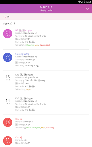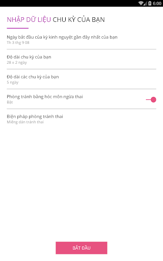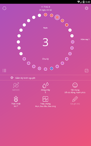 - Ngày bắt đầu chu kỳ kinh nguyệt;