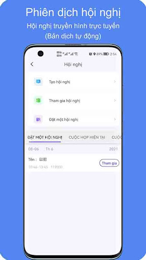 APP này chứa một hệ thống hội nghị đám mây hoàn chỉnh. Bạn có thể tổ chức một hội nghị đa quốc gia thông qua APP này và ngôn ngữ trong hội nghị sẽ được dịch theo thời gian thực.