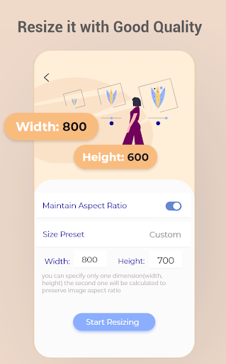 Image compressor & resize is easy to use app, just select the option for photo compressor, photo resize or photo converter and the select the images from the gallery, you will get the detailed screen to set the size in case om photo compressor, resolutions in case of photo resize and several extension for images if you want to change the extension of the photo.