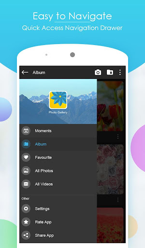 “Gallery” is an smart, smooth and easy to use photo manager app to organizing your photos, protect the photos using privacy guard, edit the pic using photo editor and much more. Browse photos easily using photo album, folder gallery, gallery vault to photo and video lock and photo moments. Using Photo Gallery Hd you never loss photo quality and with “3D photo gallery” browse unlimited photos smoothly. Let's have look smart features of the gallery app.