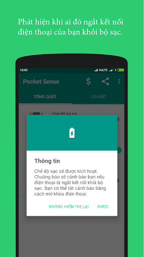 Bạn có dùng bộ sạc điện thoại tại nơi làm việc hay phòng ngủ tập thể? Bạn có muốn biết khi ai đó truy cập vào diện thoại của bạn không? Bật chế độ bộ sạc trong ứng dụng. Bạn sẽ nhận được thông báo qua chuông báo trong khi ai đó ngắt kết nối điện thoại khỏi bộ sạc.