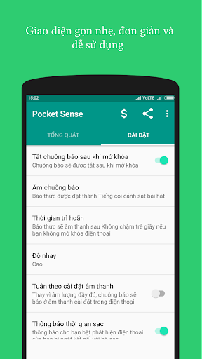 Lưu ý: Chế độ Pocket Sense sẽ không hoạt động tốt trong các điện thoại có nắp lật.