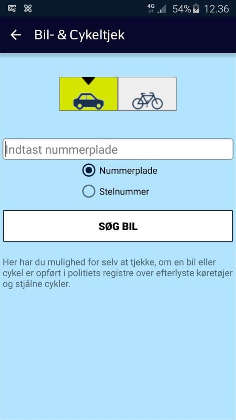Nu kan du tippe dit lokale politi, finde politistationer på kort og selv kontrollere, om et køretøj eller cykel er registreret som efterlyst.