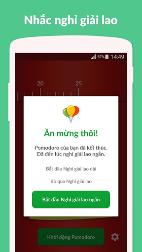 Pomodoro™ và Pomodoro Technique® thương hiệu đã được đăng ký của Francesco Cirillo. Ứng dụng này không liên quan đến Francesco Cirillo.