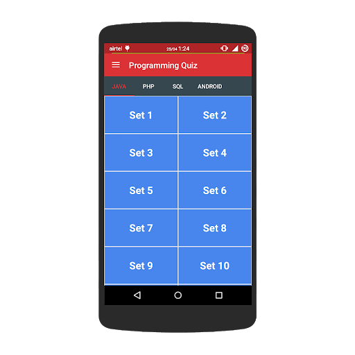 This app has Four major language quizzes. Java, SQL PHP, Android. The questions are grouped in several categories, so that you can attempt quiz after completing a chapter from your book or course material.