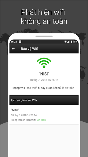 Liên tục quét và cảnh báo khi có xâm nhập bất thường nhằm tấn công vào điện thoại của bạn từ những mạng Wifi không an toàn mà bạn đã kết nối.