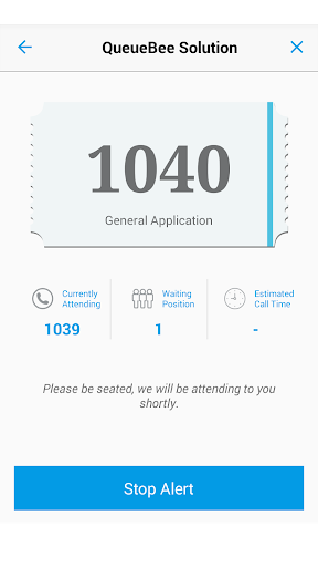 Chán và mệt mỏi với hàng đợi dài trong khu vực chờ đợi? Đã đến lúc thay đổi cách bạn xếp hàng. QueueBee Mobile Queue cho phép bạn có được số hàng đợi bằng điện thoại thông minh của mình. Đó là cách hoàn hảo để theo dõi và theo dõi trạng thái hàng đợi thời gian thực của bạn Chỉ sử dụng điện thoại thông minh từ xa mà không cần phải bị xiềng xích vật lý đến khu vực chờ tại cửa hàng dịch vụ khách hàng. QueueBee cho phép bạn đi tách cà phê hoặc thậm chí mua sắm cửa sổ tại các cơ sở gần đó trong khi vẫn còn nguyên vẹn xếp hàng cho đến lượt bạn. Nó mang lại sự an tâm vì cập nhật trạng thái hàng đợi thời gian thực trên điện thoại thông minh của bạn đảm bảo bạn sẽ không bỏ lỡ hàng đợi! Bạn sẽ liên tục nhận được thông báo âm thanh và rung điện thoại thông minh khi bạn đã sẵn sàng để được phục vụ. Chỉ cần thư giãn và thưởng thức cà phê của bạn trong khi vẫn còn trong hàng đợi.