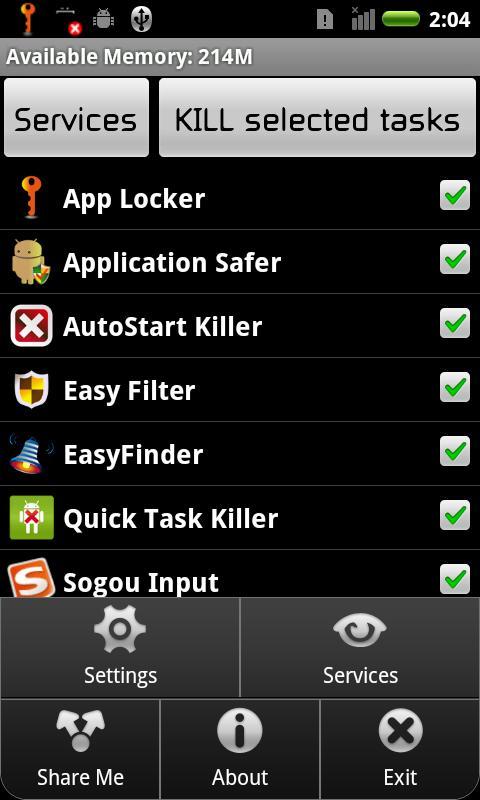 Kill task ; Uninstall apps; Speed up phone; Save battery; Auto kill & widget Quick App Killer Pro is a powerful task killer to kill running tasks for speeding up your phone, saving your battery life; Best task/app killer on market. Key Features: -Kill All (kill all by one tap) -Auto Kill (set auto kill interval/mode) -Widget (touch widget to kill all) -Uninstall apps -Task manager Notes: add important apps to ignore list!