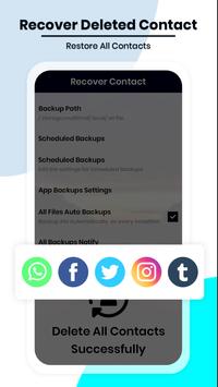 Recover Deleted All Files and Contacts Explore the hidden areas of the Android contacts database, and if the operation is done quickly after they are deleted, Restore Contact Number app rescues the selected contacts from the recycle bin. This Contacts Backup App is a tool which will help you to recover lost contacts you deleted accidently. Deleted Contact Recovery works even after a factory reset or if you want to restore contacts from another phone you sold.