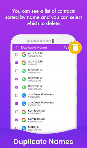 - Find duplicate contacts, contacts with similar name, phone number- Remove all duplicates and even find similar contacts.