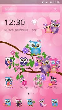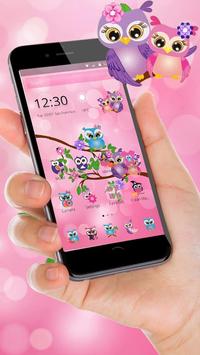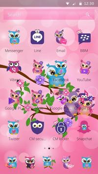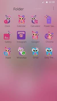 pinkish animated owl 3D Theme can be accessed on all social media apps.
