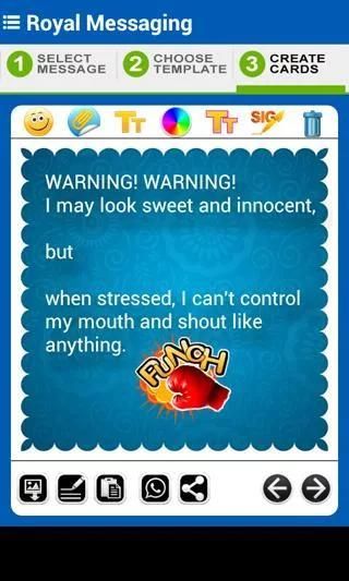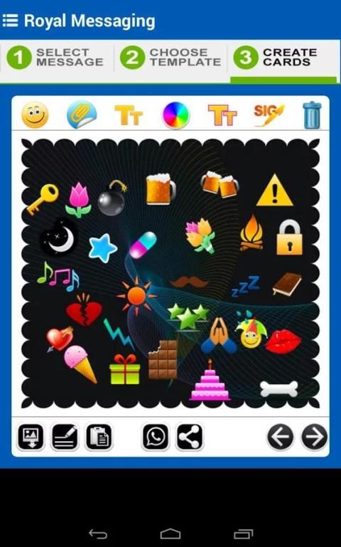 Now you need not to work on writing the messages at all. Just choose the best messages as per your feelings and occassions, select the template, add your icons and stickers and share it with your friends available anywhere like Facebook, whatsapp, email or any existing medium with damn simple interface.
