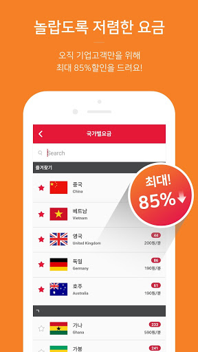 전세계 약 200여개국에 대해 최대 85% 할인된 요금으로 걱정 없이 국제전화를 사용하세요!
