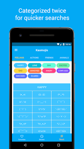 * Phân loại Kaomojis để lựa chọn nhanh hơn và dễ dàng hơn