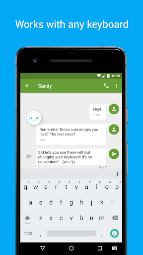 Là một ứng dụng nổi, Ski hoạt động cùng với bất kỳ bàn phím nào bạn sử dụng. Đơn giản chỉ cần chạm vào Kaomoji sẽ dán nó vào hộp đầu vào bạn nhấn.