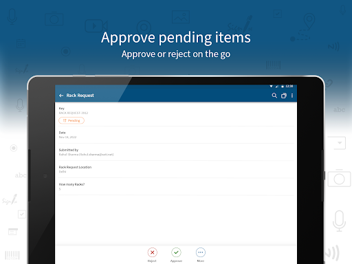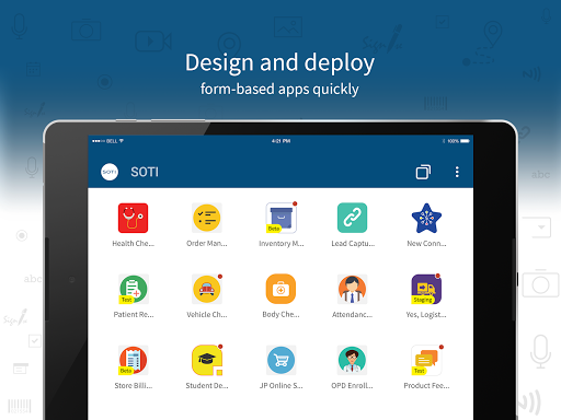Phát triển và triển khai các ứng dụng dựa trên biểu mẫu của bạn trong 3 bước dễ dàng.Thiết kế một lần và triển khai ngay lập tức trên điện thoại Android và máy tính bảng của bạn cùng một lúc.Các ứng dụng được thiết kế Soti Snap cung cấp trải nghiệm thực sự được tối ưu hóa cho từng thiết bị.
