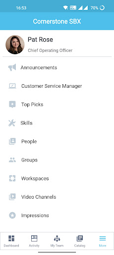 Với Cornerstone SBX Mobile, Quản lý tài năng thông minh có sẵn bất cứ lúc nào, mọi nơi. Khả năng di động cung cấp sự linh hoạt để nhân viên và người quản lý có thể học hỏi, hợp tác và huấn luyện một cách thuận tiện, nâng cao năng suất và sự tham gia. Ngoài ra, truy cập tức thì vào thông tin, chuyên gia và phê duyệt thường là chìa khóa thành công.