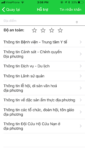 SafetyFirst còn hỗ trợ người dung truy cập nhiều thông tin hữu ích khi đi du lịch trên toàn thế giới như Thông tin bệnh viện/Trung tâm y tế; Thông tin Cảnh sát/Số cứu hỏa/Chính quyền; Thông tin Dịch vụ/Du lịch; Thông tin Lễ hội, Di sản văn hóa; Thông tin các tổ chức, đoàn hội, tôn giáo; Thông tin Lãnh sự quán/Văn phòng đại diện; Thông tin về những khu vực an toàn; Thông tin về đặc sản ẩm thực địa phương; Thông tin về đội tìm kiếm cứu hộ và cứu nạn địa phương. Khi đi du lịch, đặc biệt là du lịch nước ngoài thì những thông tin trên là rất cần thiết cho sự an toàn của các bạn.