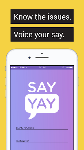 Say Yay là cách hiệu quả nhất để được thông báo trước đây, trong và sau cuộc bầu cử địa phương và liên bang. Với quy trình ra quyết định thân thiện và thân thiện với người dùng, ứng dụng cố vấn cử tri hướng dẫn bạn thông qua các vấn đề, ứng cử viên và biện pháp bỏ phiếu có liên quan đến quan điểm và sở thích chính trị của bạn. Nói Yay có sẵn trên tất cả các thiết bị di động, cho phép bạn dễ dàng truy cập vào các câu trả lời bạn cần bất cứ nơi nào.