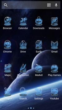 Light blue color and hologram based theme with very minimalist approach, generates flying app icon feeling.