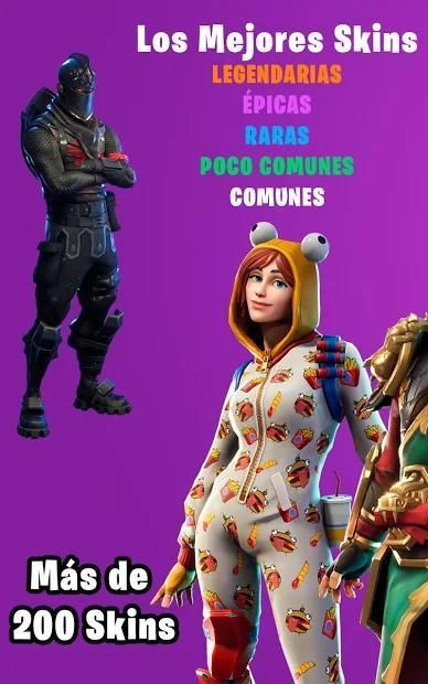 Skins, Battle Royale Skins! Who does not want to have the Legendary, Epic, Rare, Uncommon or Common Skins. Inside you will find a list of skins such as Guan Yu, Onesie, Arachne, Battle Hound, Black Knight, Carrier, Executor, Wukong and endless Skins. You will find more than 200 Skins, ready to consult. So you know, get your favorite Skin from the official store, without spending a single turkey.
