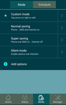 Smart Battery Saver comes with pre-installed power saver modes such as "The normal power saving mode" where only phone calls, SMS and internet access are allowed, but you can also create a custom power saving mode , suitable for all your needs and based on the battery information that you can get from the battery checker section.