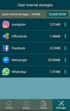 It has a "CLEAR NOW" functionality, which plays the role of a RAM booster and Task Killer, as it closes all the memory consuming apps, in order to fasten your phone, and save your battery's life.