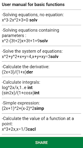 Máy tính cực mạnh dành cho học sinh và giáo viên Trung học. Giải các bài toán trung học như giải phương trình, bất phương trình, hệ phương trình, tìm nguyên hàm, tính tích phân, tính đạo hàm, tìm giá trị lớn nhất, giá trị nhỏ nhất của hàm số.... Thích hợp với các bạn học sinh và giáo viên dạy toán,